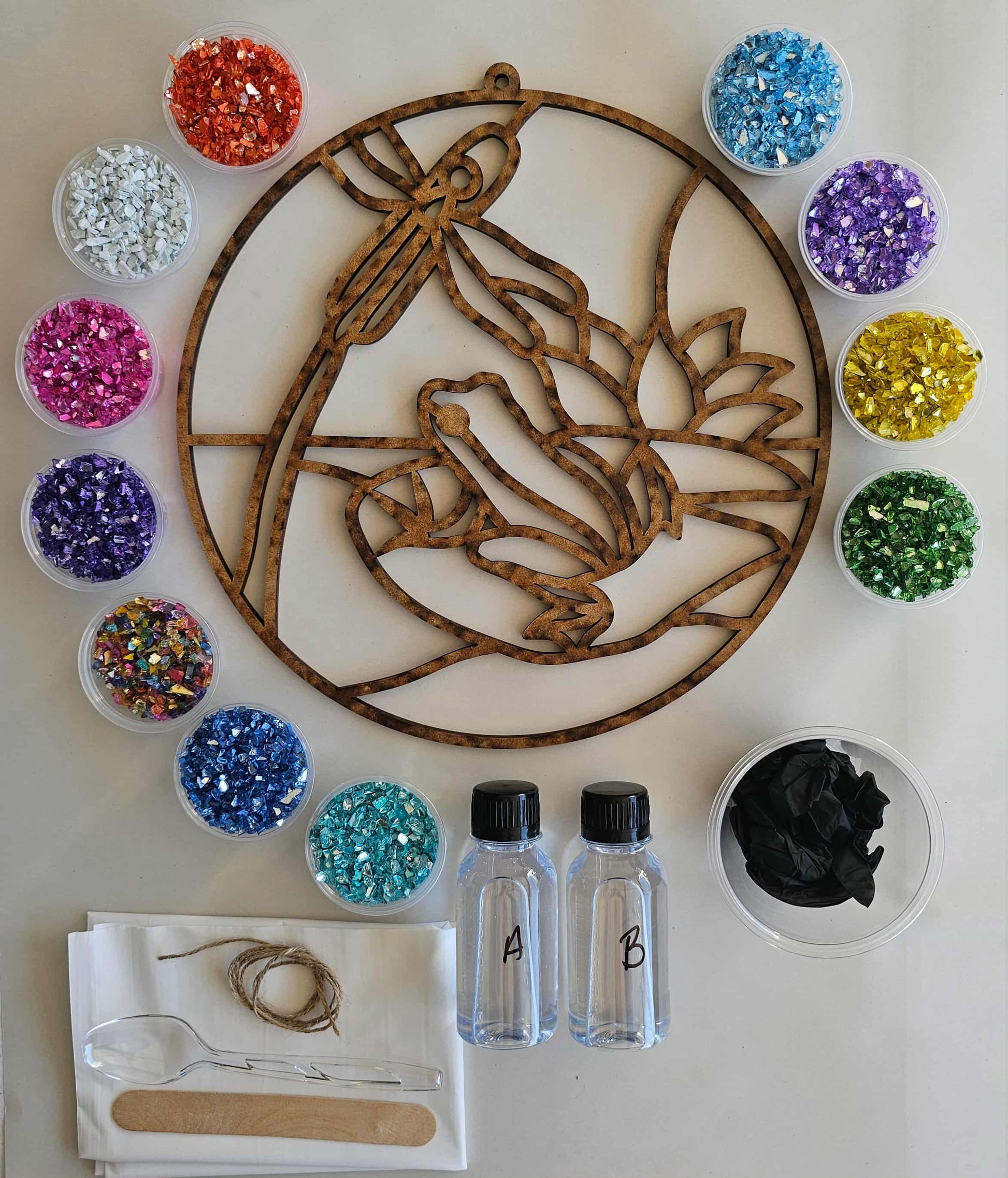 Crushed Stained Glass art project to do in the comfort of your home. YouTube tutorial now available.